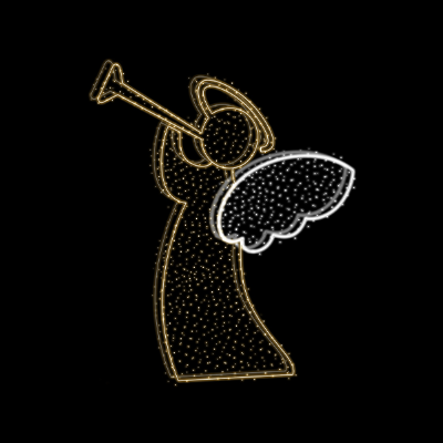 Anjo Romeu (1,63m de largura x 0,30m de profundidade x 1,83m de altura), luminoso em forma de Anjo Romeu, produzido em estrutura metálica, em tubos de metalon 30x30 e 20x20 Par 15, ferro chato 1/2 x 1/8, reforço e contorno para acabamento dos cordões de led em arame 4,2mm, recebe pintura eletrostática na cor BRANCA.Contorno com mangueira luminosa led de 12 MM de diâmentro, com efeito estrobo Na cor BRANCO FRIO E QUENTE, sendo que a cada a cada 04 (quatro) lâmpadas FRIO OU QUENTE a quinta lâmpada deve ser na cor BRANCO FRIO (obedecendo a temperatura de cor entre 6000 e 6500K) que pisca, o corte a cada metro, com 36 LEDs por metro, Leds deitado com visão 360º, potência 3w por metro, 220v.
