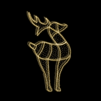 Rena Lessie (1,10m de largura x 0,15m de profundidade x 2,15m de altura), luminoso em forma de Rena Lessie, produzido em estrutura metálica, em tubos de metalon 30x30 e 20x20 Par 15, ferro chato 1/2 x 1/8, reforço e contorno para acabamento dos cordões de led em arame 4,2mm, recebe pintura eletrostática na cor BRANCA.Contorno com mangueira luminosa led de 11 MM de diâmentro, com efeito fixo, o corte a cada metro, com 30 LEDs por metro, Leds deitado com visão 360º, potência 3w por metro, 220v, totalmente a prova dágua, na cor BRANCO FRIO (obedecendo a temperatura de cor entre 6000 e 6500K).Revestimento interno com cordões de 100 LED blindado 220v, para suo externo, com efeito estrobo, sendo que a cada 04 (quatro) lâmpadas QUENTE/WARM a quinta lâmpada deve ser na cor BRANCO FRIO (obedecendo a temperatura de cor entre 6000 e 6500k) que pisca, com espaçamento de 0,10m entre as lâmpadas, com comprimento mínimo de 10 metros com 4 fios de 1,8 MM, no mínimo 100 leds por cordão. Lâmpadas de 5 MM ou mais, blindadas com cola de silicone na sua base, com revestimento em plástico duro transparente e recobertas por capa plástica na cor CRISTAL. Tomada macho e fêmea de rosca e retificador blindado 12w de 7.00 x 2,5 centímetro.