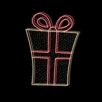 Caixa (1,50 de largura x 0,15 de profundidade x 1,80 de altura), luminoso em forma de Caixa de Presente , produzido em estrutura metálica, em tubos de metalon 20x20 e 15x15 Par 15, ferro chato 1/2 x 1/8, reforço em ferro redondo liso 3/16, além de cantoneira 1x1/8. Todo contorno recebe arame 4,2mm para fixação dos cordões de led, pintura automotiva na cor BRANCA. Contorno com mangueira luminosa led de 10 MM de diâmentro, com efeito fixo, o corte a cada metro, com 36 LEDs por metro, Leds deitado com visão 360º, potência 3w por metro, 220v, totalmente a prova dágua, na cor BRANCO FRIO (obedecendo a temperatura de cor entre 6000 e 6500K). Revestimento interno com cordões de 100 LED blindado 220v, para suo externo, com efeito estrobo, sendo que a cada 04 (quatro) lâmpadas BRANCO FRIO a quinta lâmpada deve ser na cor BRANCO FRIO (obedecendo a temperatura de cor entre 6000 e 6500k) que pisca e lâmpadas VERMELHA a quinta lâmpada deve ser na cor BRANCO FRIO, ambas com espaçamento de 0,10m entre as lâmpadas, com comprimento mínimo de 10 metros com 4 fios de 1,8 MM, no mínimo 100 leds por cordão. Lâmpadas de 5 MM ou mais, blindadas com cola de silicone na sua base, com revestimento em plástico duro transparente e recobertas por capa plástica na cor BRANCO e VERMELHO respectivamente. Tomada macho e fêmea de rosca e retificador blindado 12w de 7.00 x 2,5 centímetro.
