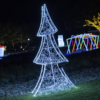 Arvore Slim Cor (0,65m de largura x 1,20m de altura e 0,15m de profundidade), luminoso em forma de pinheiro, produzido em estrutura metálica, em tubos metalo 20x20 Par 18, ferro chato 1/2 x 1/8 e reforço em arame 4,2mm, recebe pintura eletrostática na cor BRANCA.Contorno com mangueira luminosa led de 12 MM de diâmentro, com efeito estrobo, sendo que a cada a cada 04 (quatro) lâmpadas FRIAS a quinta lâmpada deve ser na cor BRANCO FRIO (obedecendo a temperatura de cor entre 6000 e 6500K) que pisca, o corte a cada metro, com 36 LEDs por metro, Leds deitado com visão 360º, potência 3w por metro, 220v.Revestimento interno com cordões de 100 LED blindado 220v, para uso externo, com efeito estrobo, sendo que a cada 04 (quatro) lâmpadas a quinta lâmpada deve ser na cor BRANCO FRIO (obedecendo a temperatura de cor entre 6000 e 6500k) que pisca, com espaçamento de 0,10m entre as lâmpadas, com comprimento mínimo de 10 metros com 4 fios de 1,8 MM, no mínimo 100 leds por cordão. Lâmpadas de 5 MM ou mais, blindadas com cola de silicone na sua base, com revestimento em plástico duro transparente e recobertas por capa plástica na cor CRISTAL. Tomada macho e fêmea de rosca e retificador blindado 12w de 7.00 x 2,5 centímetro.