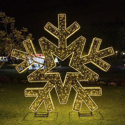Floco 2D (2,50m de largura x 0,20 de profundidade x2,50 de altura), luminoso em forma de floco 2D, produzido em estrutura metálica, em tubos de metalon 30x30 e 20x20 Par 15, ferro chato 1/2 x 1/8, reforço e contorno para acabamento dos cordões de led em arame 4,2mm, recebe pintura eletrostática na cor BRANCA.Contorno com mangueira luminosa led de 12 MM de diâmentro, com efeito estrobo, sendo que a cada a cada 04 (quatro) lâmpadas QUENTE/WARM a quinta lâmpada deve ser na cor BRANCO FRIO (obedecendo a temperatura de cor entre 6000 e 6500K) que pisca, o corte a cada metro, com 36 LEDs por metro, Leds deitado com visão 360º, potência 3w por metro, 220v.Revestimento interno com cordões de 100 LED blindado 220v, para suo externo, com efeito estrobo, sendo que a cada 04 (quatro) lâmpadas QUENTE/WARM a quinta lâmpada deve ser na cor BRANCO FRIO (obedecendo a temperatura de cor entre 6000 e 6500k) que pisca, com espaçamento de 0,10m entre as lâmpadas, com comprimento mínimo de 10 metros com 4 fios de 1,8 MM, no mínimo 100 leds por cordão. Lâmpadas de 5 MM ou mais, blindadas com cola de silicone na sua base, com revestimento em plástico duro transparente e recobertas por capa plástica na cor CRISTAL. Tomada macho e fêmea de rosca e retificador blindado 12w de 7.00 x 2,5 centímetro.