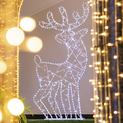 Rena II (0,70 x 1,30m), luminoso em forma Rena , produzido em estrutura metálica, ferro chato 1/2 x 1/8 e reforço interno em arame 4,2mm, recebe pintura eletrostática na cor PRETA.Contorno com mangueira luminosa led de 12 MM de diâmentro com efeito estrobo, sendo que a cada a cada 04 (quatro) lâmpadas FRIO a quinta lâmpada deve ser na cor BRANCO FRIO (obedecendo a temperatura de cor entre 6000 e 6500K) que pisca, o corte a cada metro, com 36 LEDs por metro, Leds deitado com visão 360º, potência 3w por metro, 220v.Revestimento interno com cordões de 100 LED blindado 220v, para suo externo, com efeito estrobo, sendo que a cada 04 (quatro) lâmpadas QUENTE/WARM a quinta lâmpada deve ser na cor BRANCO FRIO (obedecendo a temperatura de cor entre 6000 e 6500k) que pisca, com espaçamento de 0,10m entre as lâmpadas, com comprimento mínimo de 10 metros com 4 fios de 1,8 MM, no mínimo 100 leds por cordão. Lâmpadas de 5 MM ou mais, blindadas com cola de silicone na sua base, com revestimento em plástico duro transparente e recobertas por capa plástica na cor CRISTAL. Tomada macho e fêmea de rosca e retificador blindado 12w de 7.00 x 2,5 centímetro.
